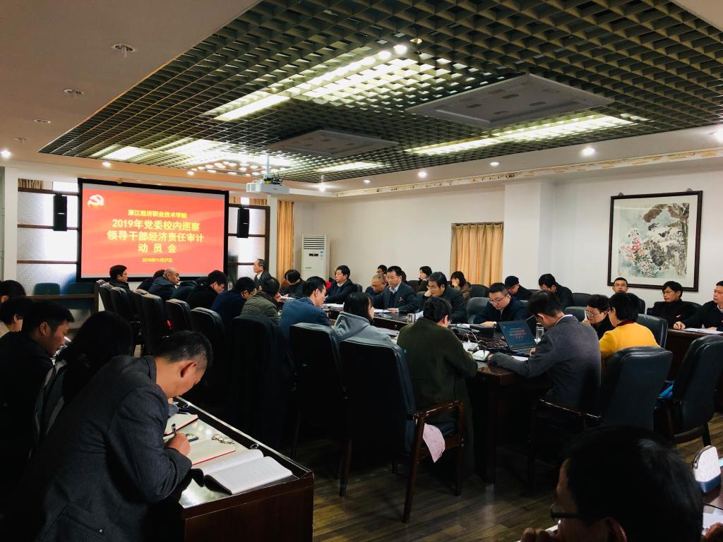 11月27日上午,学校召开2019年党委校内巡察和领导干部经济责任审计动员会,校领导、职能部门负责人、二级学院党总支书记、院长、党总支副书记参加了动员会。会议由纪委书记朱利萍主持。党委书记骆光林、党委副书记、院长邵庆祥作动员讲话。