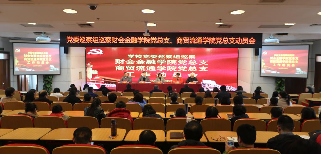 巡察组全体成员、财会金融学院和商贸流通学院全体教职工、2016年以来调离和退休的原班子成员参加动员会。