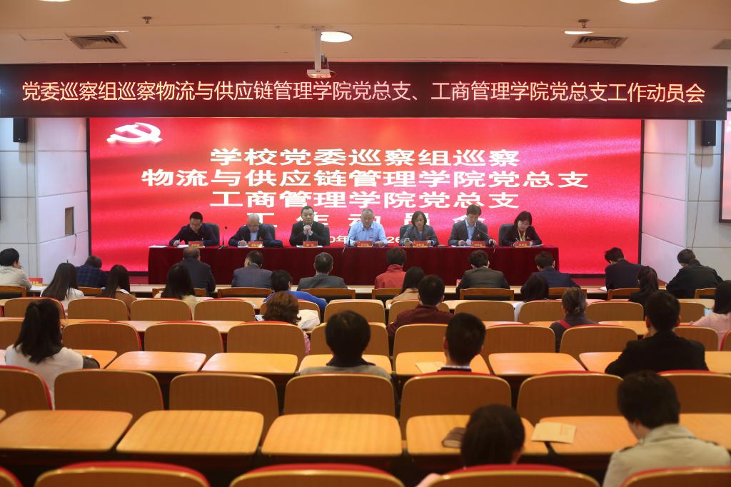 巡察组全体成员、物流与供应链管理学院和工商管理学院全体教职工、2017年以来调离和退休的原班子成员参加动员会。