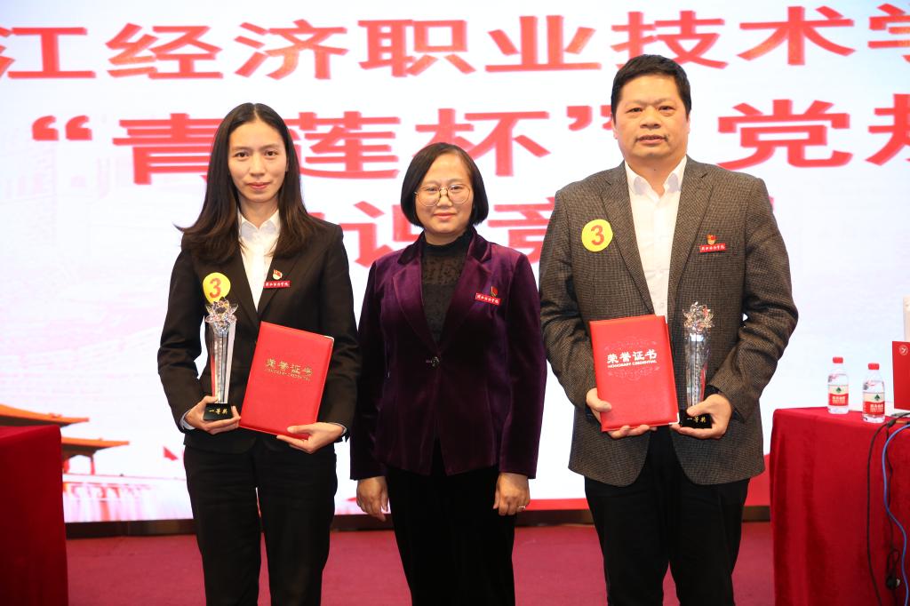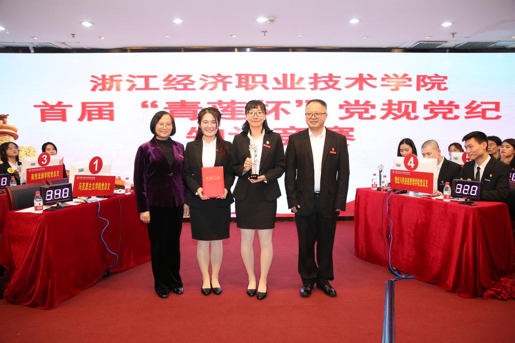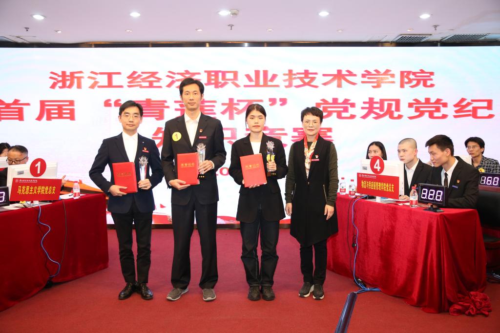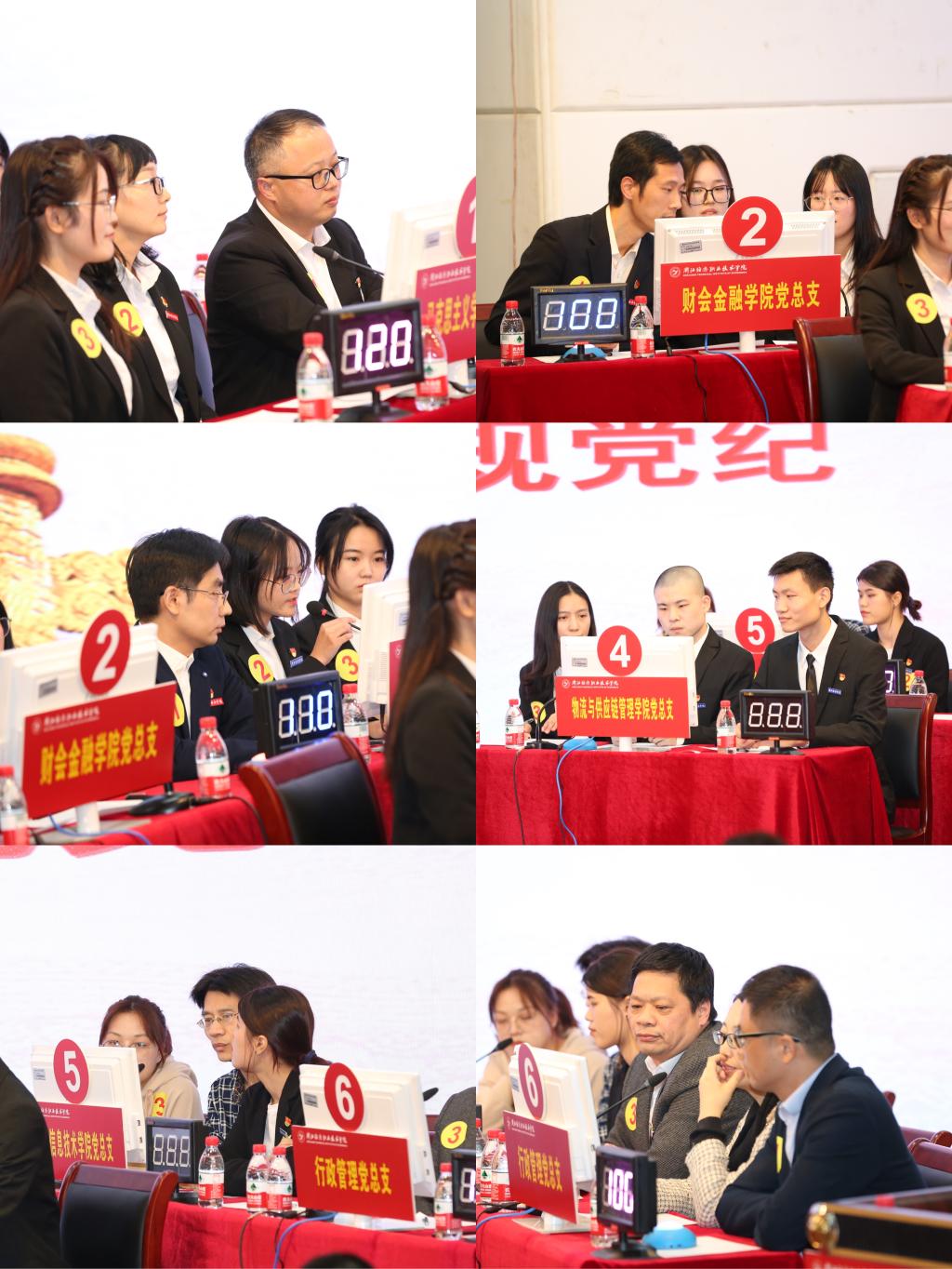 现场决赛,来自行政管理党总支、财会金融学院党总支、马克思主义学院党总支、数字信息技术学院党总支、商贸流通学院党总支和物流与供应链管理学院党总支等6支代表队展开激烈角逐。决赛采取现场竞答方式,设必答题、抢答题和风险题三个环节。竞赛中,选手们的表现可圈可点,台上比分你追我赶,充分展示各自对党规党纪知识的学习成果和认识水平,比赛现场气氛热烈。经过比拼,马克思主义学院党总支代表队夺得冠军,获得了特等奖,行政管理党总支、物流与供应链管理学院党总支获得了一等奖,财会金融学院党总支、数字信息技术学院党总支和商贸流通学院党总支获得了二等奖,莅会领导为获胜代表队一一颁奖。