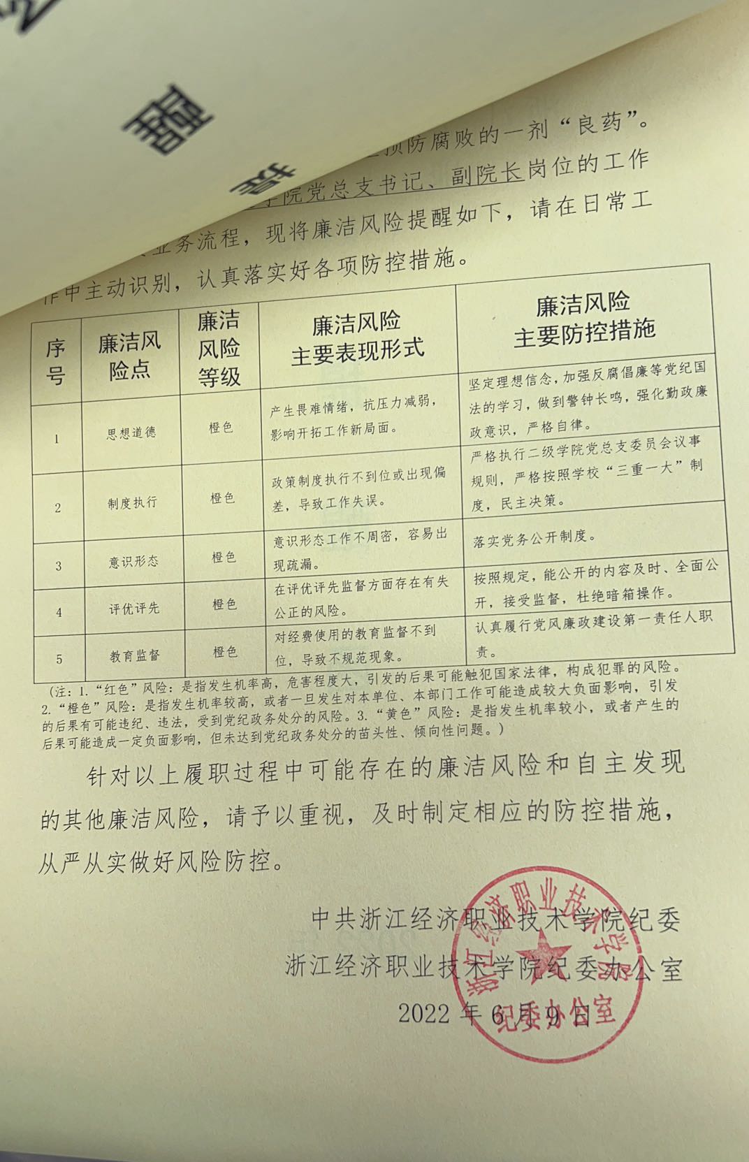 推送有“辣味”的提醒函。学校纪委在前期梳理的岗位廉洁风险清单的基础上,针对各类干部、职工、教师各个岗位的具体特点,形成了个性化的《廉洁风险提醒函》,所有“两新”人员都接收了与自身岗位相匹配的廉洁风险提醒函,对所在岗位风险点的表现形式、风险等级和防控措施进行了“全交底”,大家纷纷表示,收到这样的提醒函,有“醍醐灌顶”的“清醒剂”效果,在今后的工作中一定会时时对照,自我提醒,严防廉洁风险。