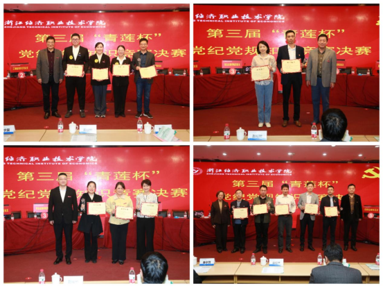 本次知识竞赛内容涵盖党的二十大精神及《中国共产党章程》《中国共产党纪律处分条例》《中华人民共和国公职人员政务处分法》等党章党规党纪知识。经过必答题、抢答题和风险题的激烈比拼,工商管理学院党总支获得特等奖,汽车技术学院党总支、行政管理党总支获得一等奖,物流与供应链管理学院党总支、财会金融学院党总支和后勤管理党总支获得二等奖,马克思主义学院党总支、教务教辅党总支、商贸流通学院党总支、数字信息技术学院党总支、学工党总支获得三等奖,校领导为获奖代表队颁发了荣誉证书和奖杯。