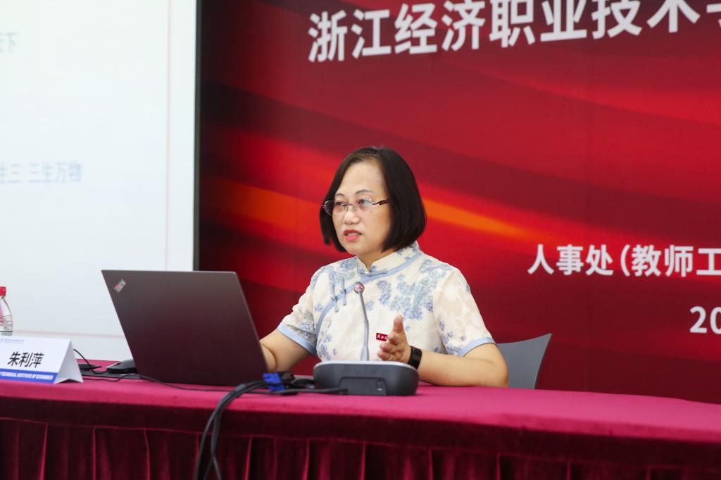 为进一步加强“两新”人员廉洁从业教育,扣好“第一粒扣子”,筑牢“不想腐”的思想堤坝, 9月7日上午,学校党委委员、纪委书记朱利萍教授在培训大楼为新入职教职工讲授以“厚植情怀守初心 勤廉从教担使命”为主题的廉洁从教第一课,40名新教师认真聆听了讲座。