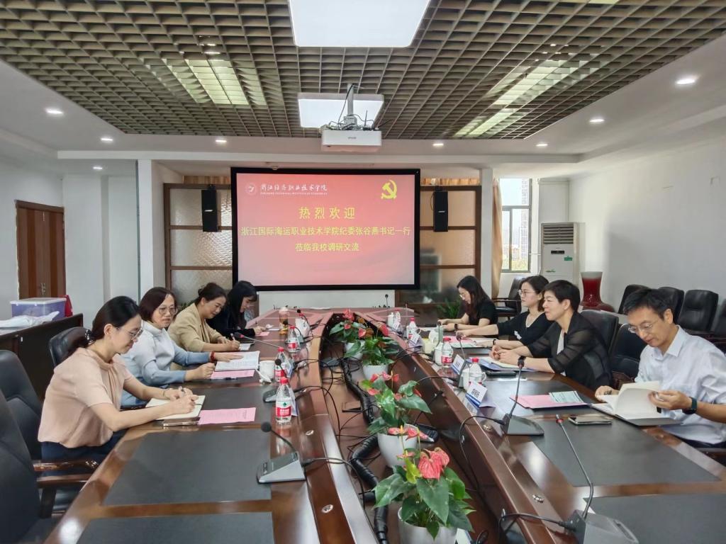 11月3日上午,浙江国际海运职业技术学院纪委书记张谷燕一行4人,来我校交流清廉学校建设和纪检工作经验。我校纪委书记朱利萍对张谷燕书记一行的到访表示热烈欢迎,带领大家参观了学校清风廊、雅韵园、廉洁文化角等校园廉洁文化景观。随后双方在七楼会议室进行座谈交流,朱书记介绍了学校发展历程和近年来取得的成绩,以及清廉学校建设的经验。纪委办主任易际培从党建引领、制度保障、监督体系、作风建设、廉洁文化等几个方面介绍了清廉学校建设的基本情况和举措。与会人员随后就清廉学校建设纪检工作中遇到的问题,开展了深入的讨论交流。