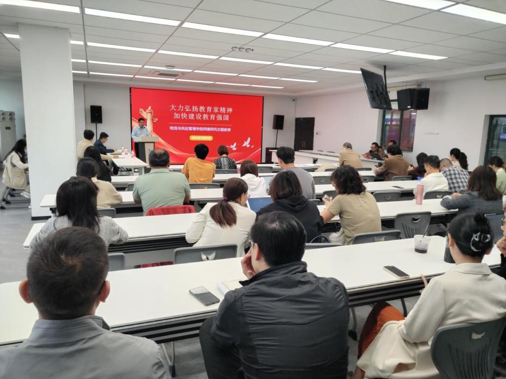 为深刻领会习近平总书记在全国教育大会上的讲话精髓,积极践行教育家精神,全面强化师德师风建设,物流与供应链管理学院于10月22日在控制科技楼4306实训室举办了以“弘扬教育家精神,廉洁从教树新风”为主题的专题教育活动。