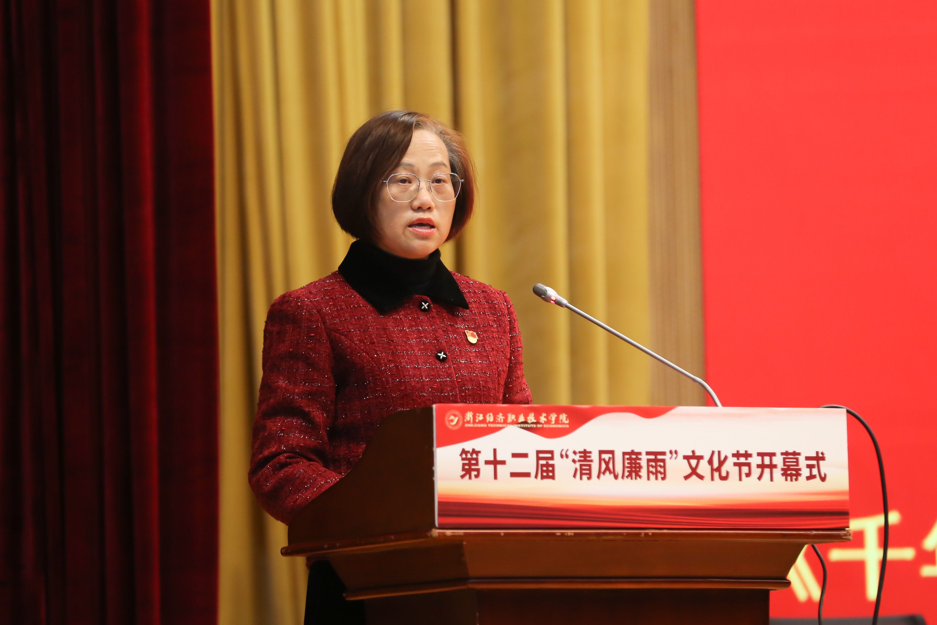为深入贯彻中共中央《关于加强新时代廉洁文化建设的意见》精神,巩固深化深入贯彻中央八项规定精神学习教育成果,持续推进“清廉经院”建设,12月2日,我校在培训大楼二楼报告厅举办第十二届“清风廉雨”文化节开幕式暨第六届“青莲杯”党纪党规知识竞赛决赛活动。校长、党委副书记柯孔林、党委班子成员学校党委班子成员、全体中层干部、师生党员代表等350余人参加活动,纪委书记朱利萍主持开幕式。