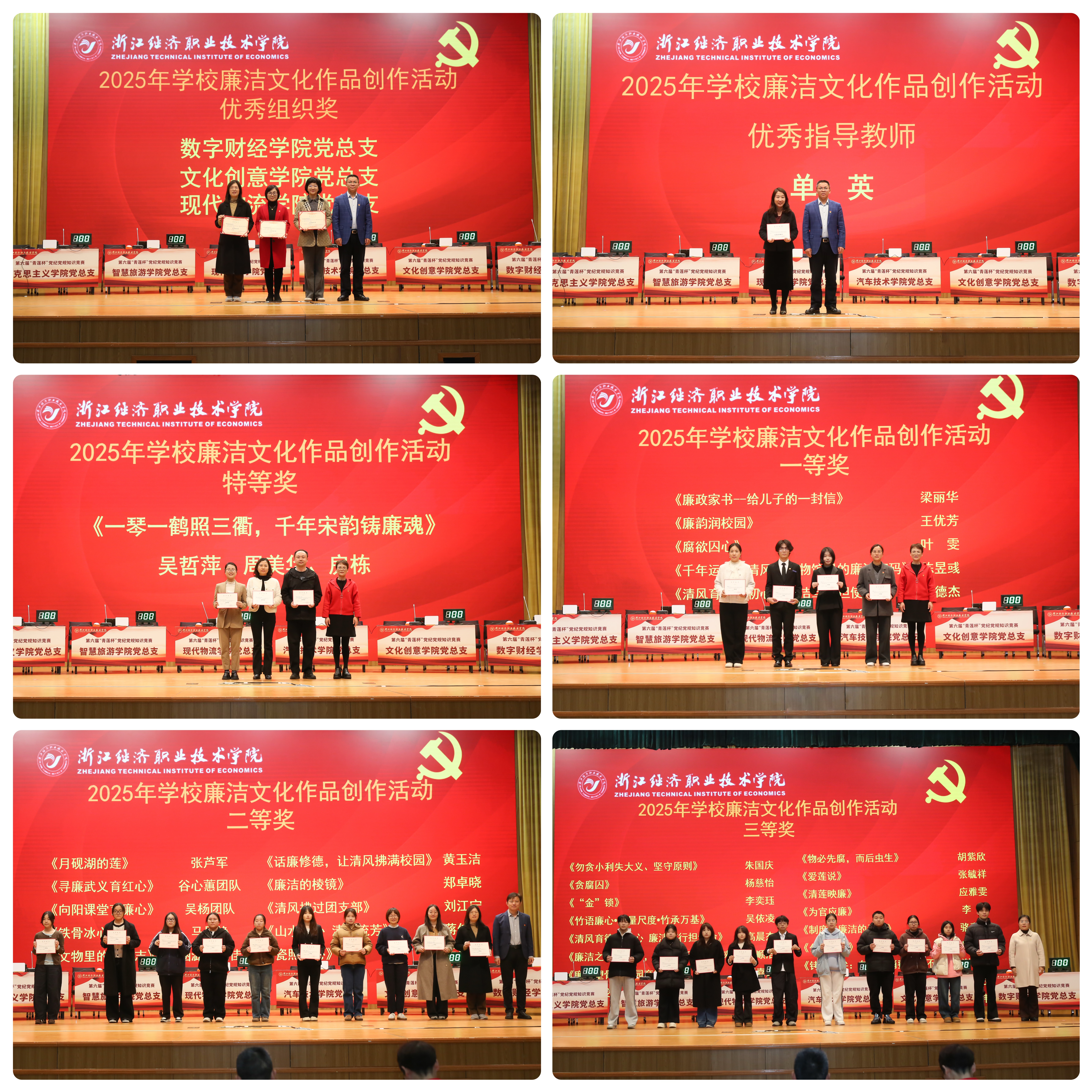 开幕式上,纪委书记朱利萍通报了我校在2025年浙江省教育系统廉洁教育系列活动中的获奖情况。同时对学校廉洁文化作品创作活动的优秀组织单位、优秀指导教师和获奖者进行了表彰。
